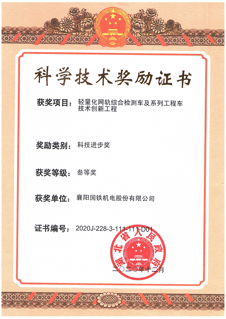 湖北省科技進(jìn)步三等獎(jiǎng) 輕量化網(wǎng)軌綜合檢測(cè)車(chē)及系列工程車(chē)技術(shù)創(chuàng)新工程