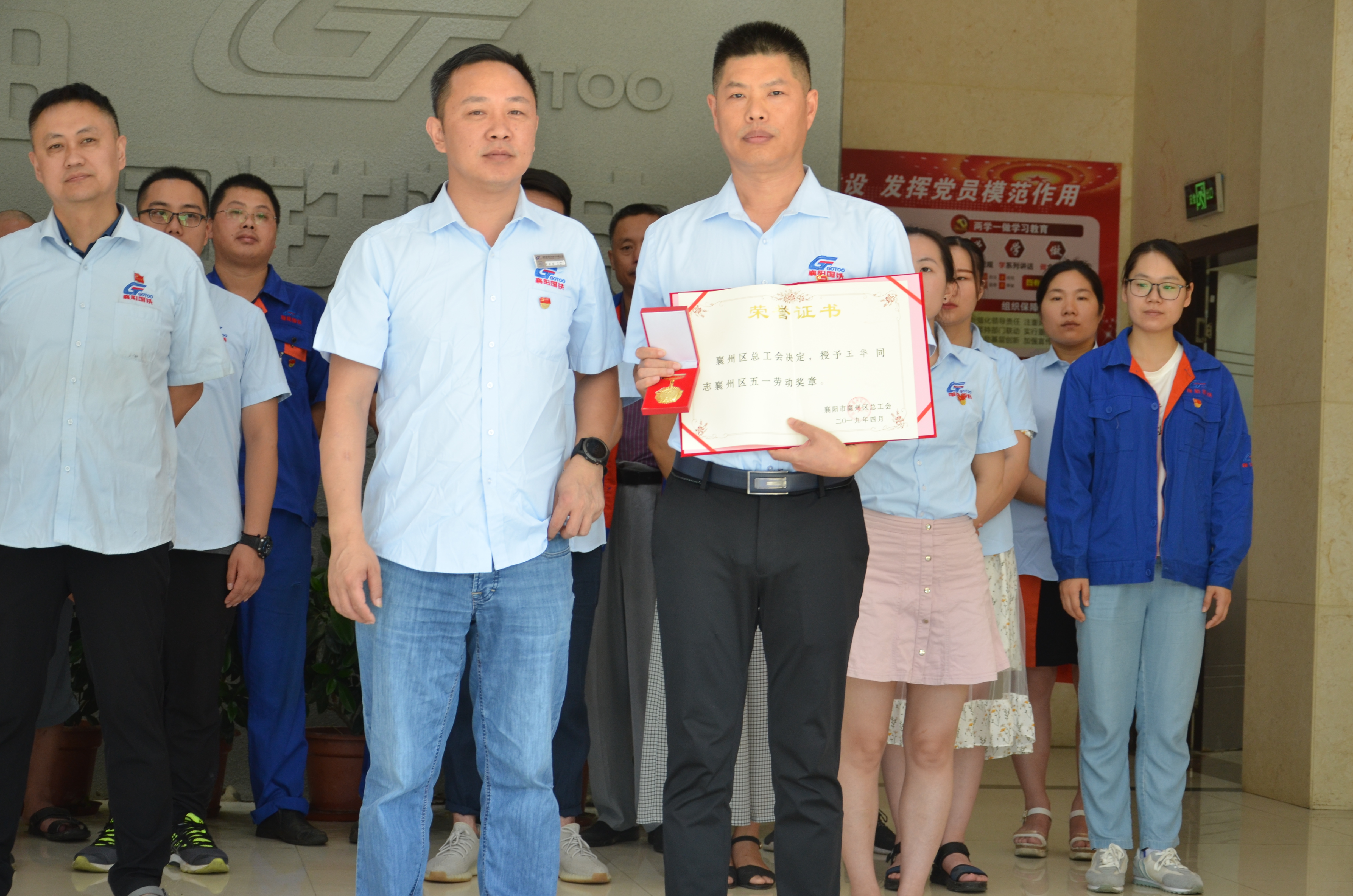 襄州區(qū)總工會(huì)決定,授予王華同志襄州區(qū)五一勞動(dòng)獎(jiǎng)?wù)隆?;授予“襄?yáng)國(guó)鐵機(jī)電股份有限公司研發(fā)中心襄陽(yáng)工人先鋒號(hào)獎(jiǎng)?wù)?。由黨支部書(shū)記代表代表襄州區(qū)總工會(huì)授予獲獎(jiǎng)部門獎(jiǎng)?wù)?、證書(shū)、獎(jiǎng)牌。
